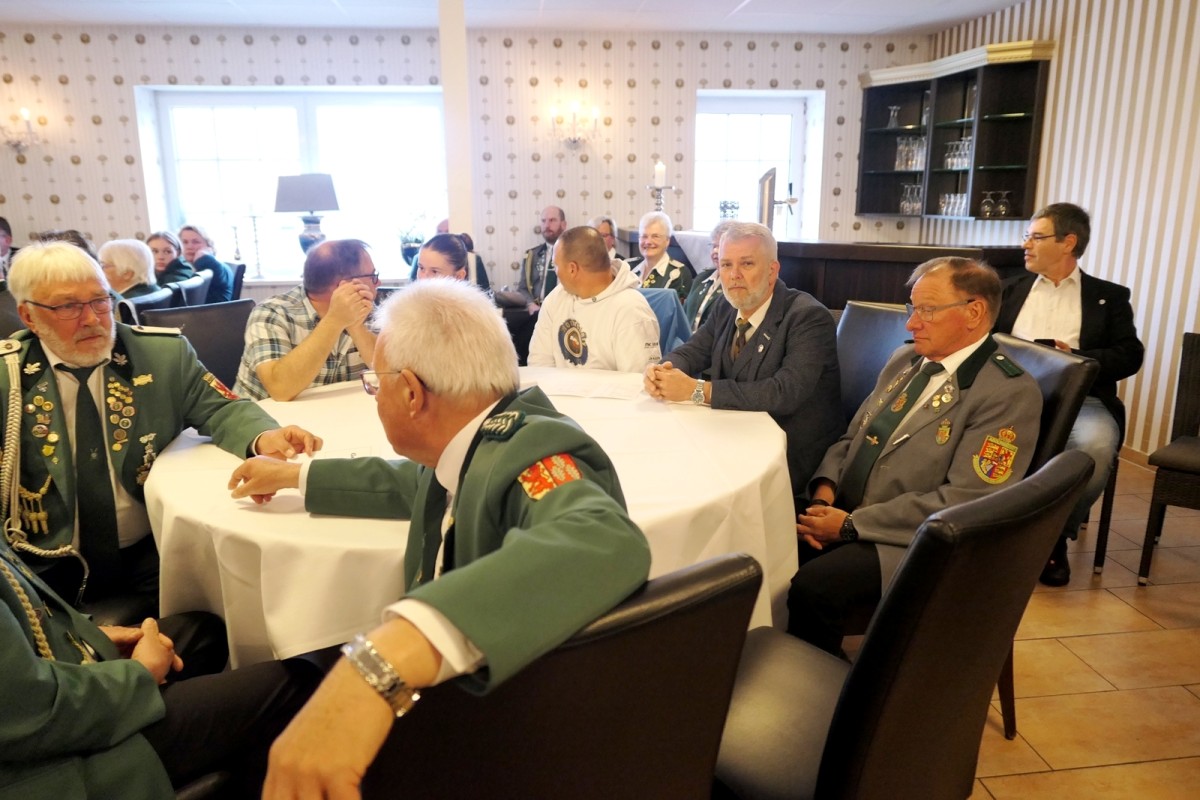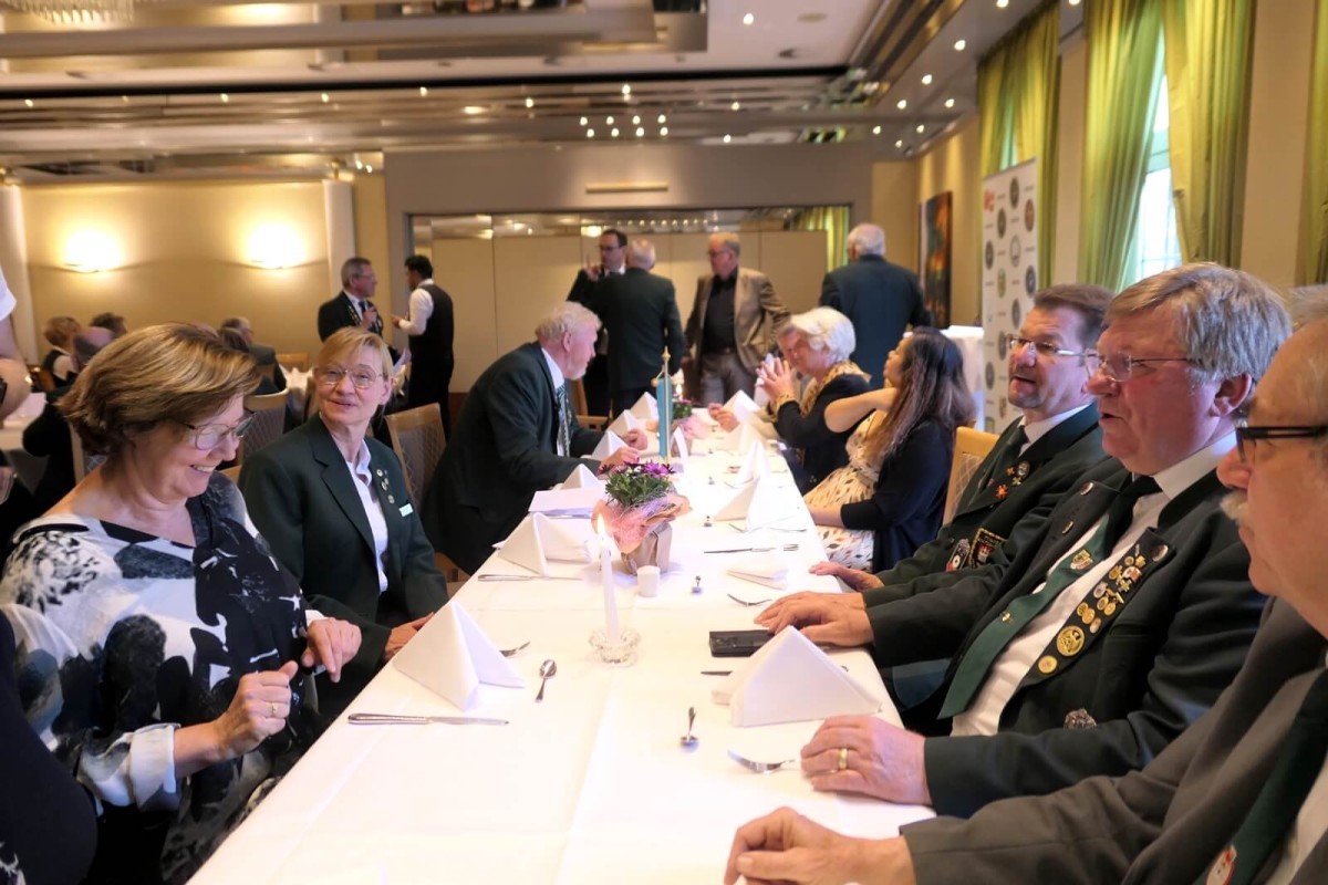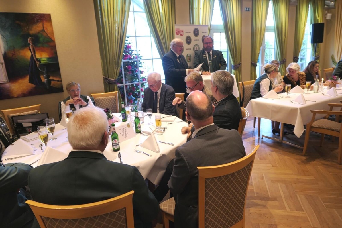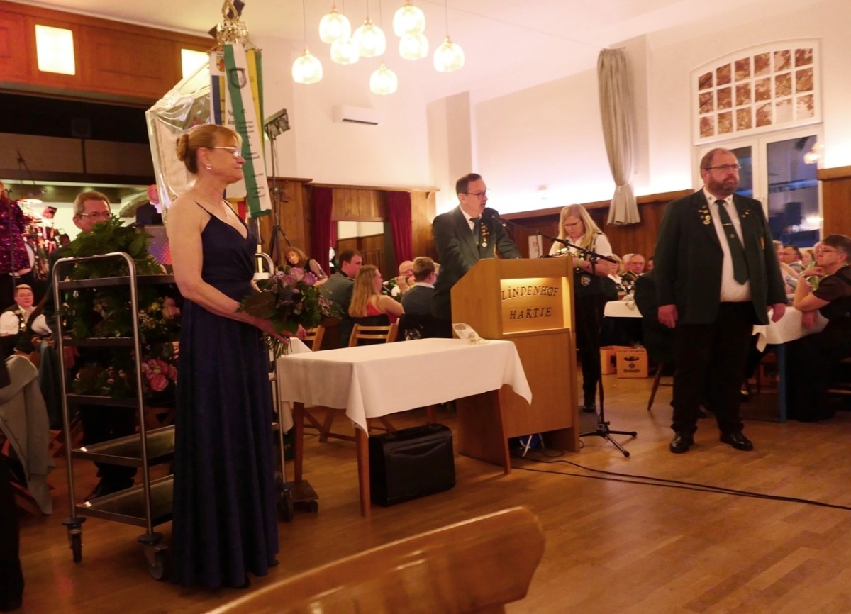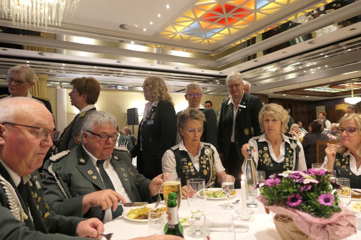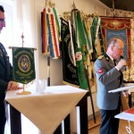Als letzte wurden die Organisatoren des 72. Landesschützentages auf die "Bühne" gebeten und geehrt. Sie alle erhielten als eine Erinnerung und Dank für ihre Arbeit, einen Trinkbecher mit NWDSB-Emblem versehen vom Geschäftsführer Volker Kächele. Von links: Bezirkspräsident Karl-Friedrich Scharrelmann, Ulrich Ehlers, Friedel Kelkenberg, Thomas Nowak, Britta Löhmann, Lena Löhmann, Bianca Meyer, Marianne Vallan u. Siegfried Brockmann.