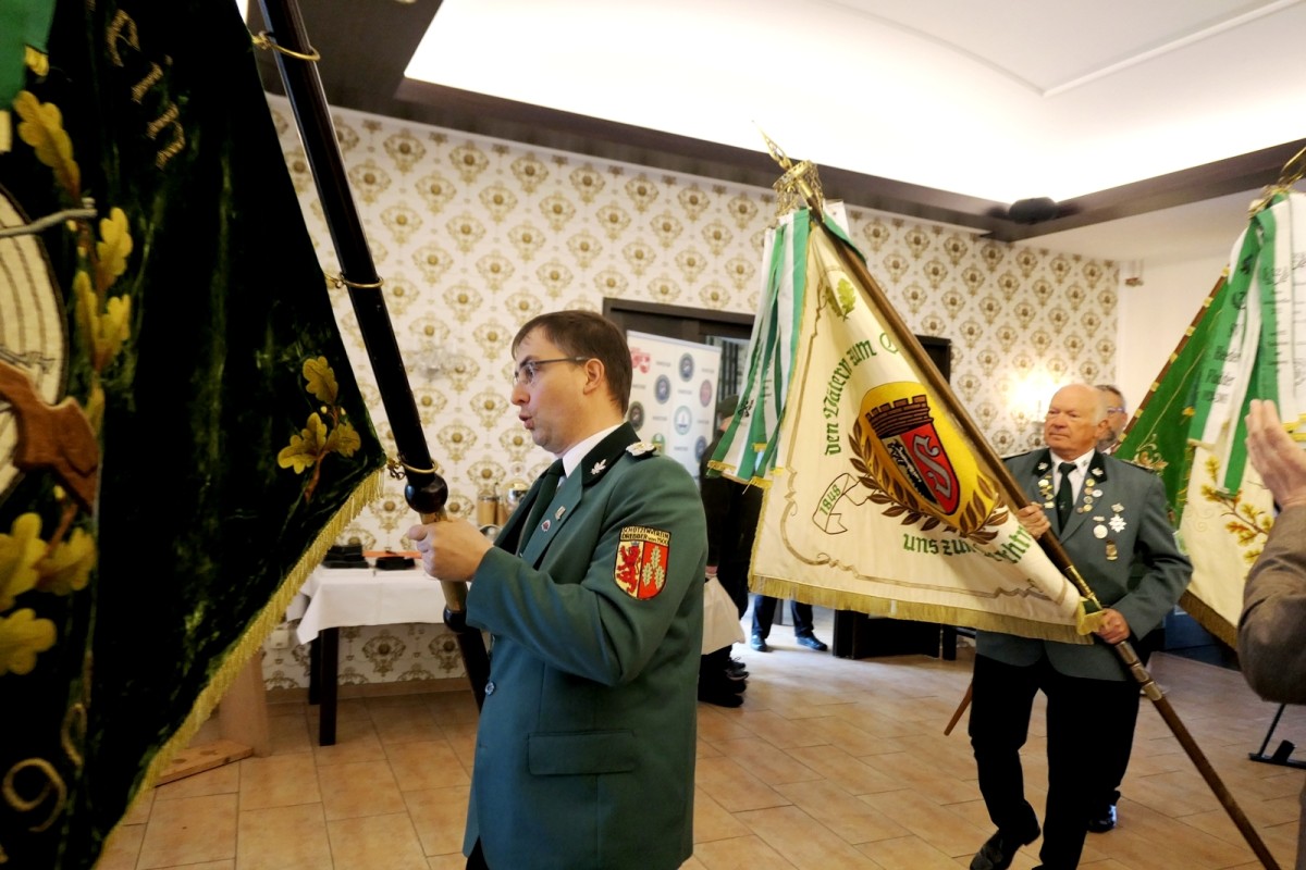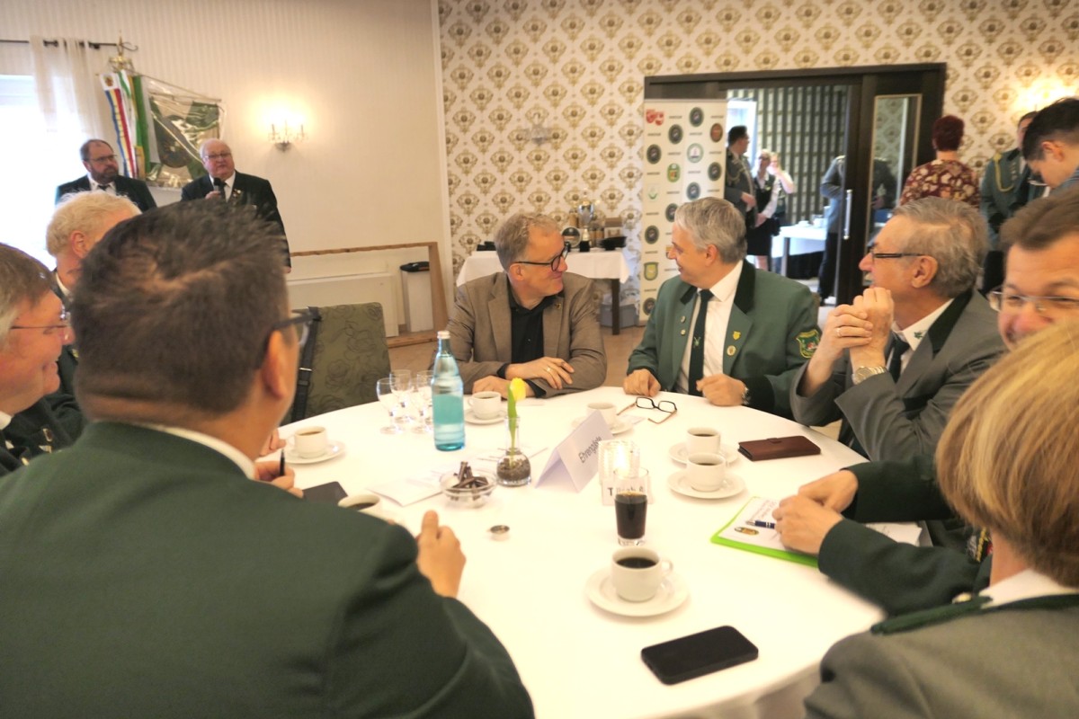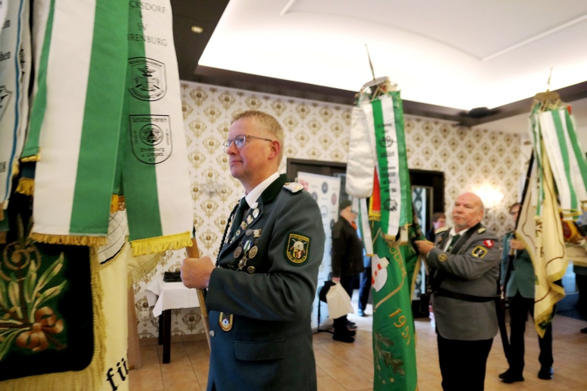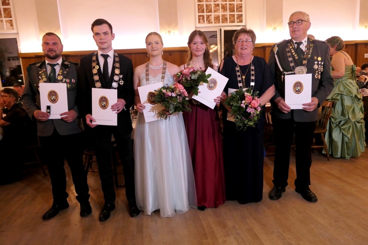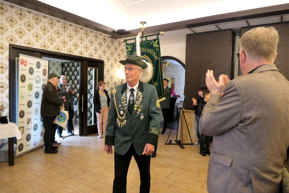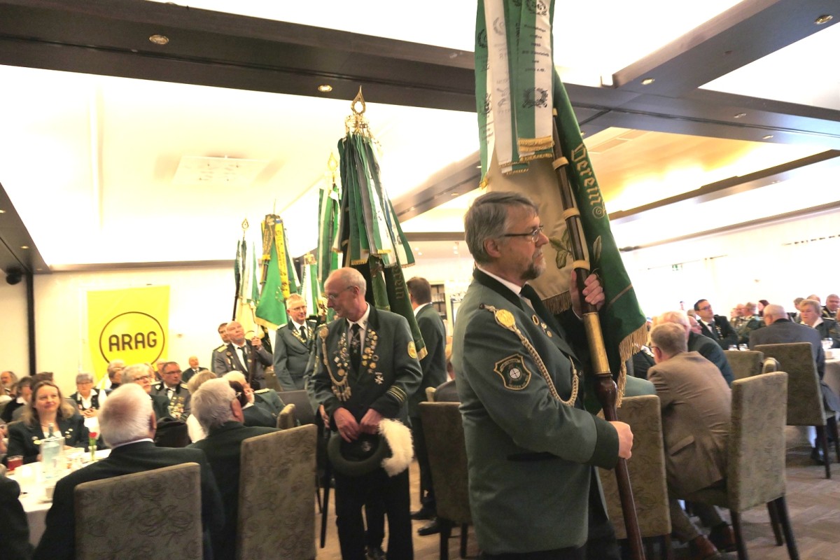 Als letzte wurden die Organisatoren des 72. Landesschützentages auf die "Bühne" gebeten und geehrt. Sie alle erhielten als eine Erinnerung und Dank für ihre Arbeit, einen Trinkbecher mit NWDSB-Emblem versehen vom Geschäftsführer Volker Kächele. Von links: Bezirkspräsident Karl-Friedrich Scharrelmann, Ulrich Ehlers, Friedel Kelkenberg, Thomas Nowak, Britta Löhmann, Lena Löhmann, Bianca Meyer, Marianne Vallan u. Siegfried Brockmann.