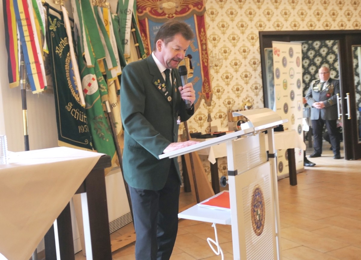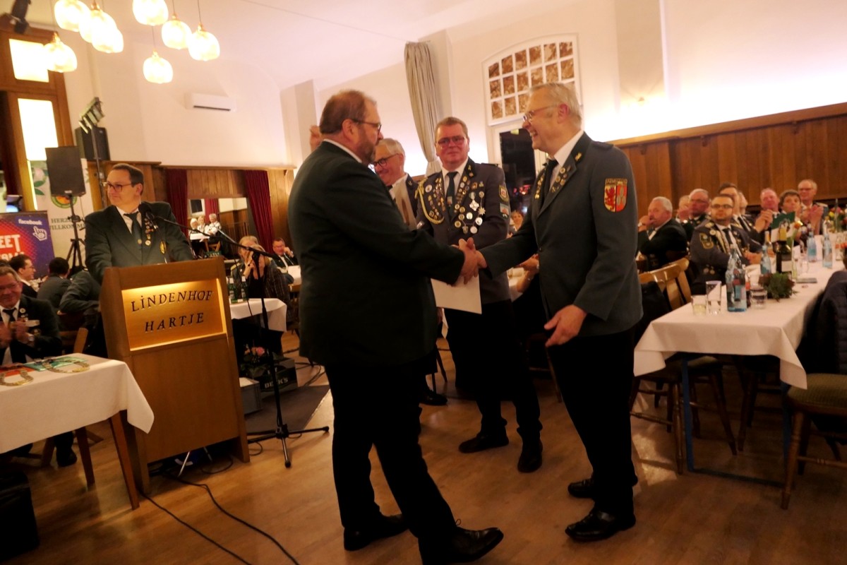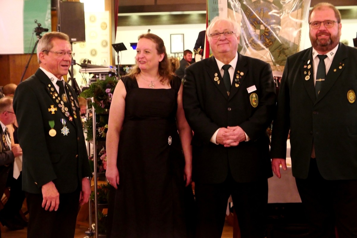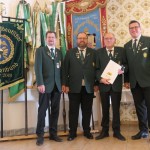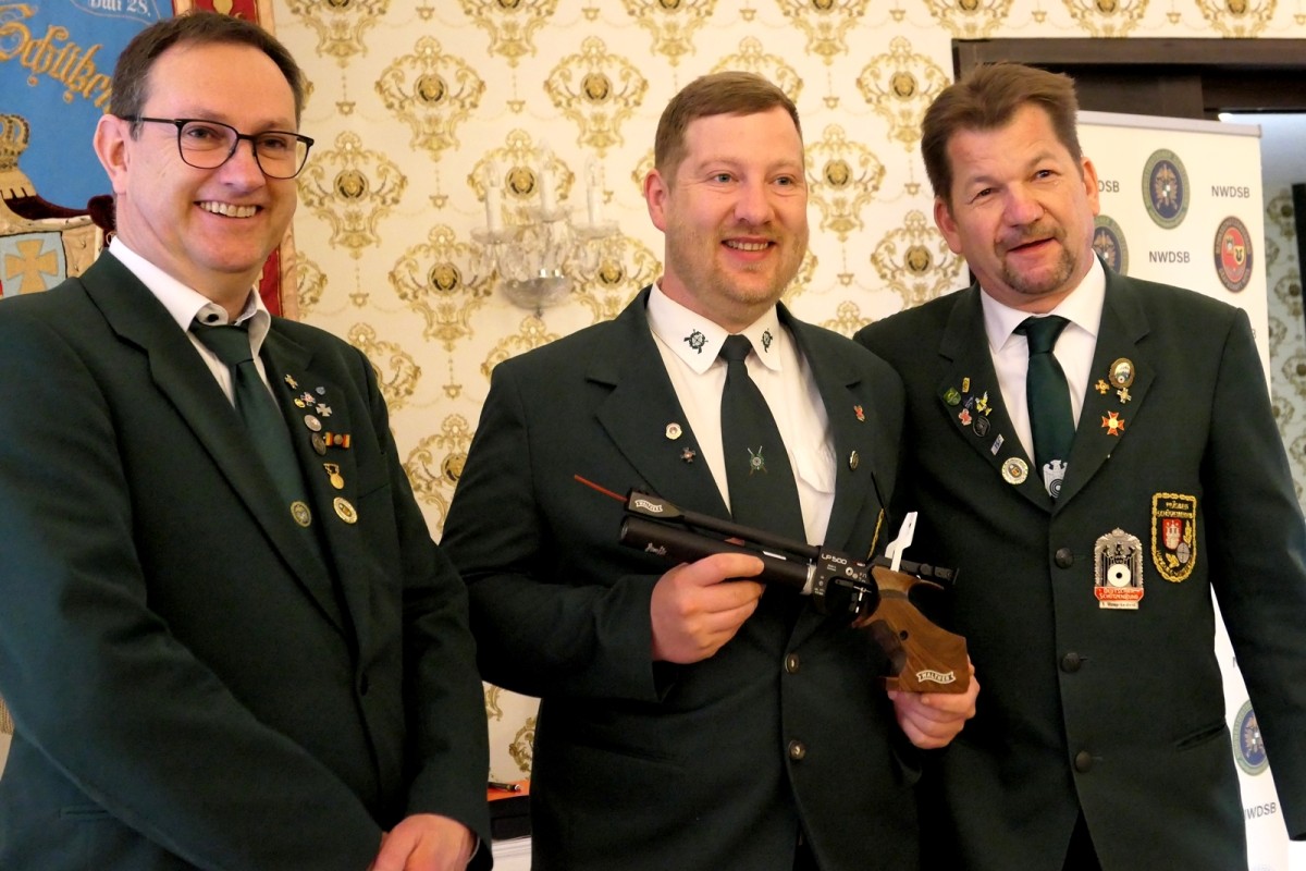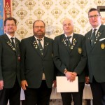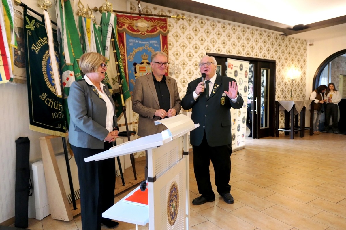 Als letzte wurden die Organisatoren des 72. Landesschützentages auf die "Bühne" gebeten und geehrt. Sie alle erhielten als eine Erinnerung und Dank für ihre Arbeit, einen Trinkbecher mit NWDSB-Emblem versehen vom Geschäftsführer Volker Kächele. Von links: Bezirkspräsident Karl-Friedrich Scharrelmann, Ulrich Ehlers, Friedel Kelkenberg, Thomas Nowak, Britta Löhmann, Lena Löhmann, Bianca Meyer, Marianne Vallan u. Siegfried Brockmann.