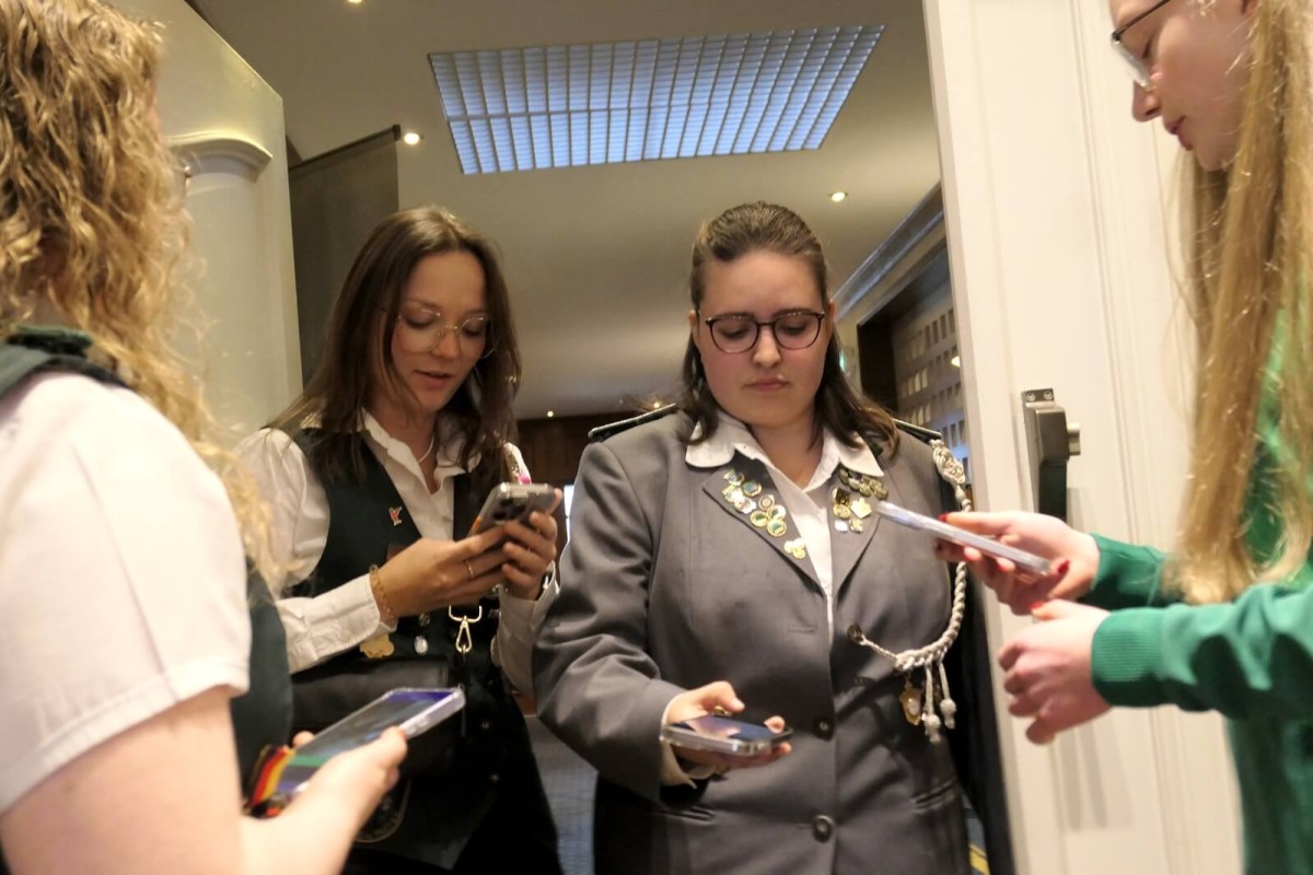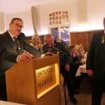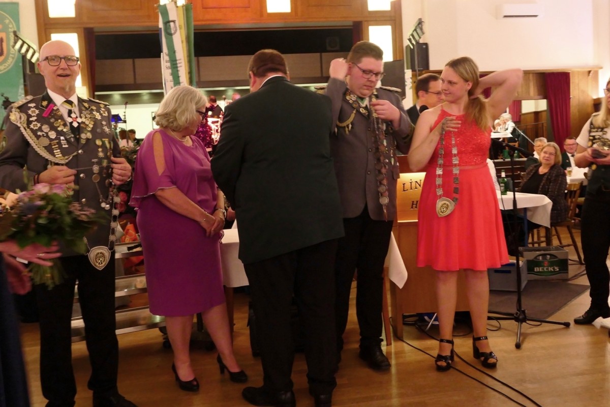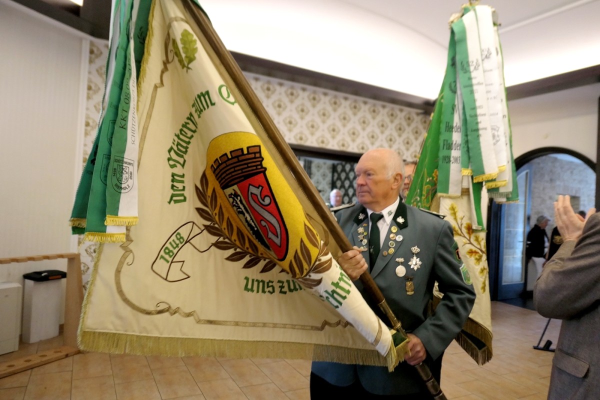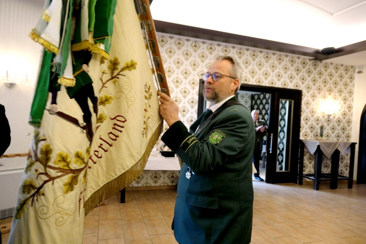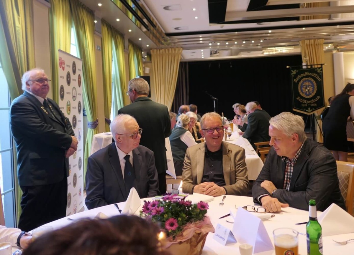 Als letzte wurden die Organisatoren des 72. Landesschützentages auf die "Bühne" gebeten und geehrt. Sie alle erhielten als eine Erinnerung und Dank für ihre Arbeit, einen Trinkbecher mit NWDSB-Emblem versehen vom Geschäftsführer Volker Kächele. Von links: Bezirkspräsident Karl-Friedrich Scharrelmann, Ulrich Ehlers, Friedel Kelkenberg, Thomas Nowak, Britta Löhmann, Lena Löhmann, Bianca Meyer, Marianne Vallan u. Siegfried Brockmann.